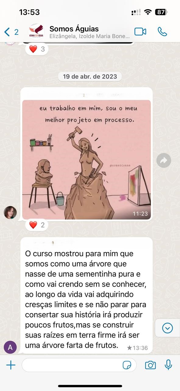 Também pude estudar e aprender numa formação com o mestre, psiquiatra brasileiro, Dr Moisés, no qual tenho a minha maior inspiração e admiração. Enfim, amo muito o que eu faço, busco estar cada vez mais consciente da minha história familiar e de minhas raizes, em um processo de me tornar um ser humano melhor e auxiliar as pessoas que lhe procuram a fazer o mesmo.